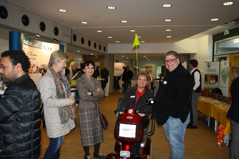 Die Möglichkeiten, einen Alterssimulationsanzug auszuprobieren, Einblicke in Lagerungstechniken am Pflegebett zu gewinnen oder die Fahrt mit einem Elektrorollstuhl auszuprobieren, stießen auf reges Interesse.